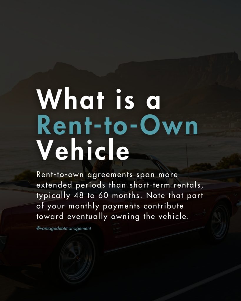 People usually confuse rent-to-own with short-term car rentals. Rent-to-own agreements span more extended periods than short-term rentals, typically 48 to 60 months. Note that part of your monthly payments contribute toward eventually owning the vehicle.